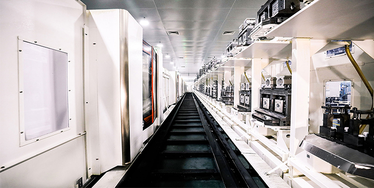 • FMS柔性生产线,由6台机床组成:柔性生产线是将多台机床联结起来,配以自动运送装置组成的生产线